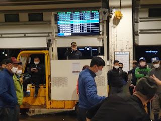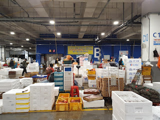 새벽 3시에 활어회 경매 하고 갑각류의 경매는 오전 4시에 시작합니다!갑각류 선어 먼저 활어 순으로~ 이곳에서 옥션에 참여할 수 없으니 알뜰 수산업자분들께 구해주세요!1킬로당 얼마를 받고 싶다고 사전에 중개인에게 말하면 되지만, 그 날의 상황에 따라 다르고, 낙찰된 가격에 1킬로당 일정한 수수료를 더해 구입하는 구조입니다!