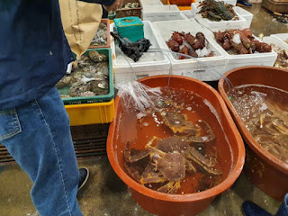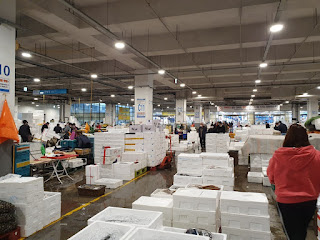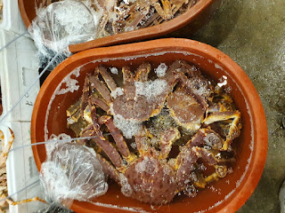 이런 분위기입니다킹크랩은 요즘 굉장히 비쌌대요우 킹크랩 활어는 kg당 9만원, 킹크랩 선어도 kg당 5만원이 넘을 정도로! 토제는 구석자리로 분류되어 있는 것을 운 좋게 1kg에 30,000원에 낙찰받아 중간상인에게 수수료를 붙여서 사왔다.