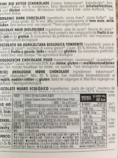 -카카오 함량최소85%이상 -코코아마스,코코아버터,코코아분말,설탕,바닐라정도는 ok -식물성유지,레시틴(대두로 유전자조작가능성으로)No