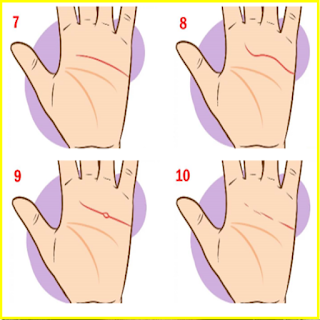 두뇌선 1번처럼 두뇌선이 짧으면 정신적인 성취보다는 신체적인 성취를 선호하는 경향이 높은 것으로 나타나고 두 번째 두뇌선처럼 모양이 기울어져 곡선을 그리면 창의적인 성격이 강하다는 평을 듣습니다. 3번 두뇌선처럼 시작점이 생명선과 붙어있지 않고 떨어져 있으면 모험적이고 삶에 대한 열정이 있는 성격이고 두뇌선처럼 두뇌선이 구불구불하면 주의가 산만하다는 이야기를 들을 수 있습니다.
