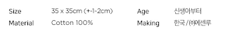 이중직 거즈 소재이므로 통기성과 흡수성이 뛰어나 촉감이 부드럽고 아기 피부에 좋다고 알려져 있습니다.